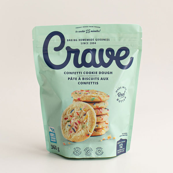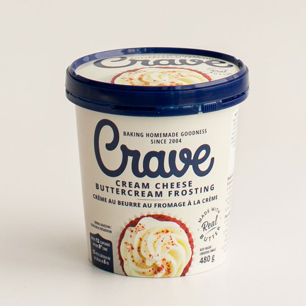 All of our frozen products are made with real butter, kept fresh in the freezer aisle! Find our frozen cookie dough, recently featured in Costco and our frozen buttercream in iconic Crave flavours.